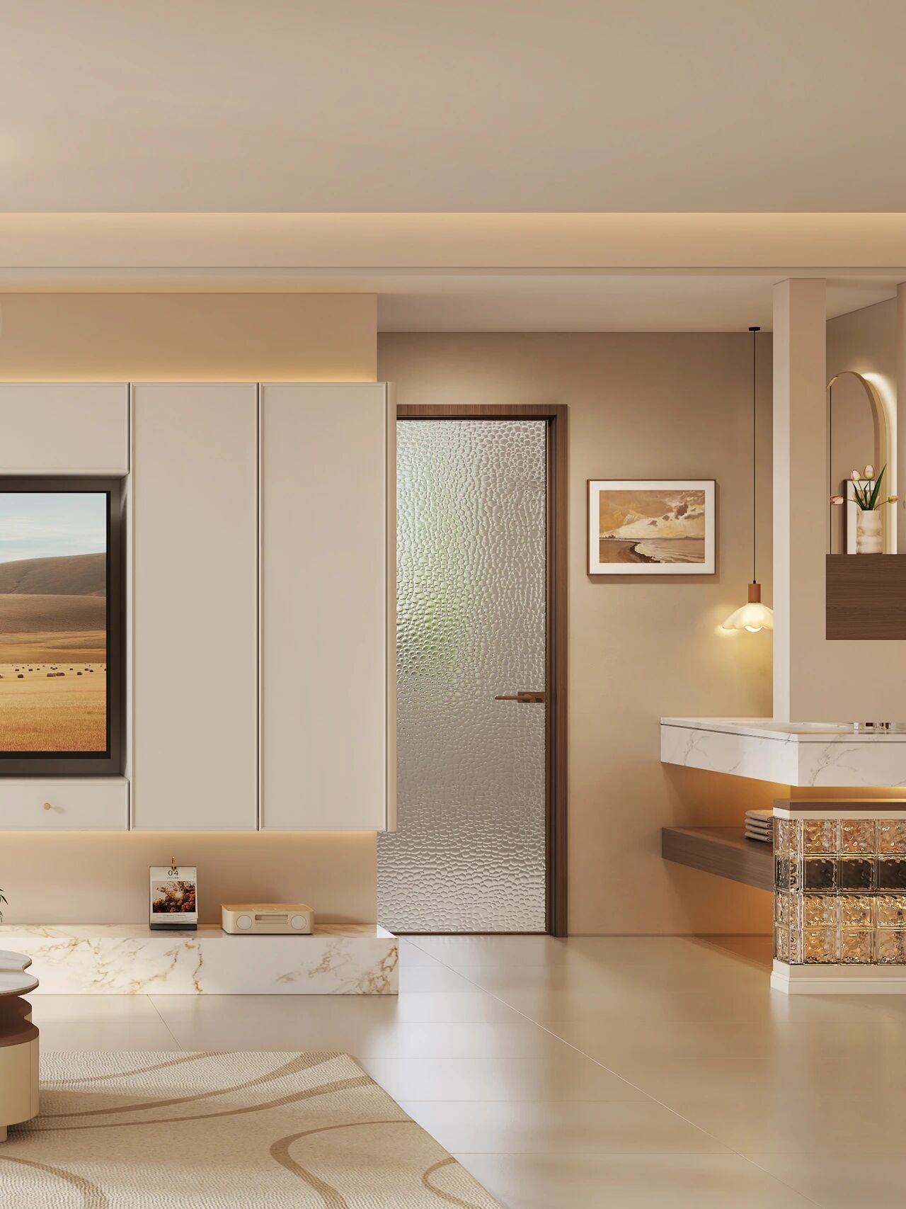 電(dian)視櫃上下懸空+穿插設(shè)計(ji)