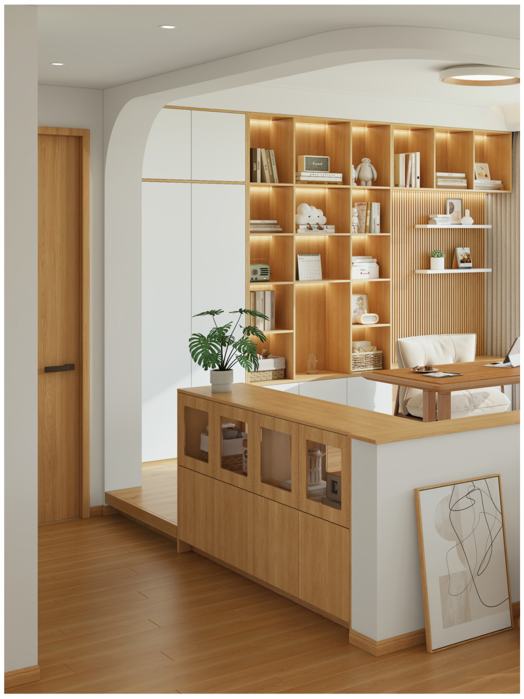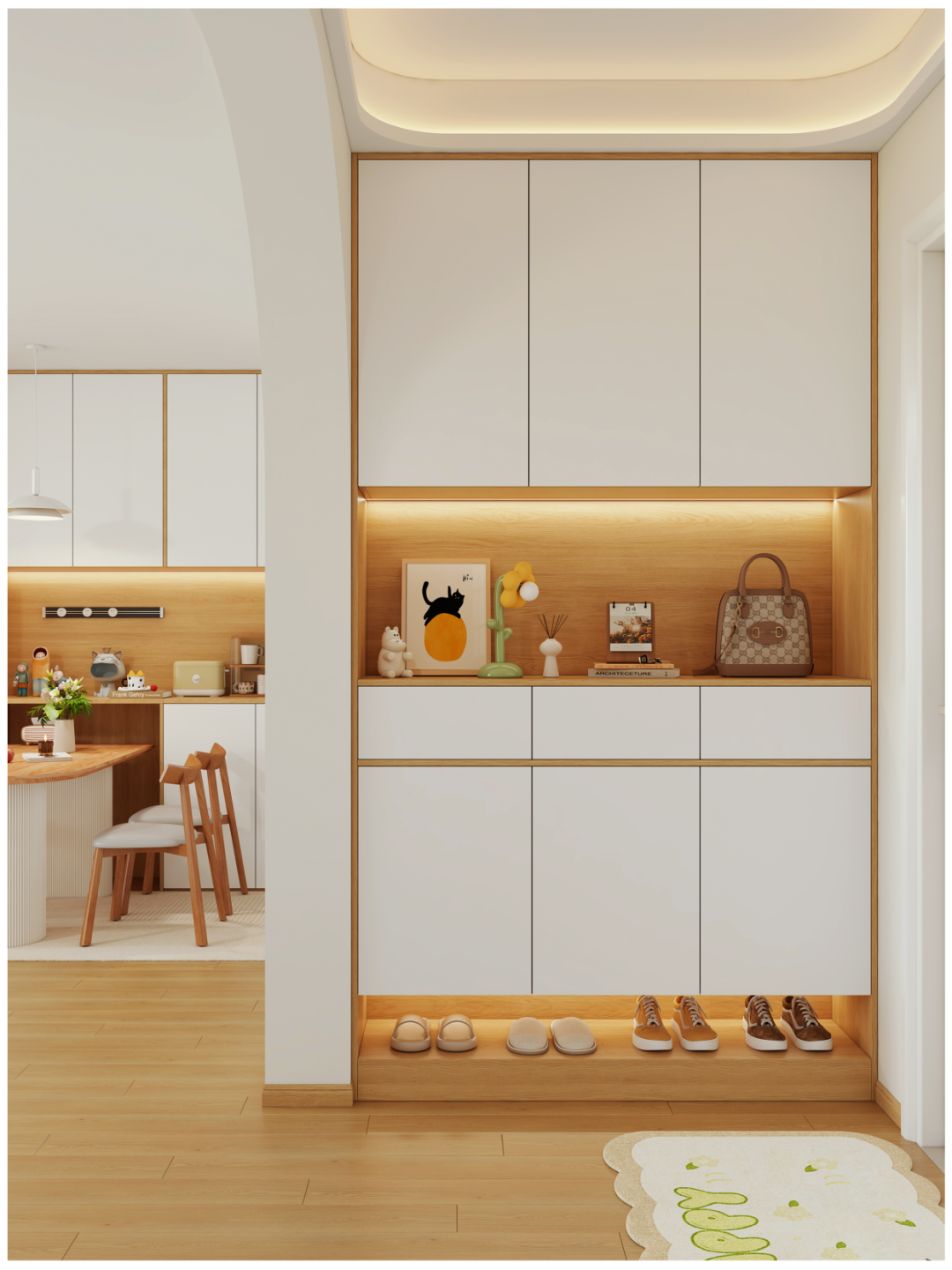 玄關櫃內(nei)嵌+中(zhong)部(bu)留空置物(wù)