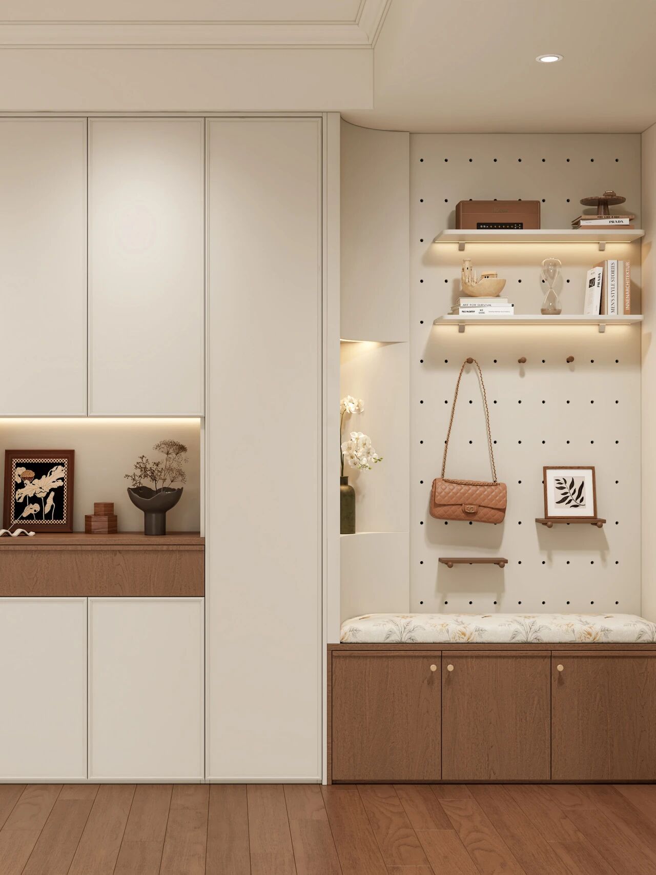 左側定製(zhi)鞋櫃+洞洞闆+換鞋凳