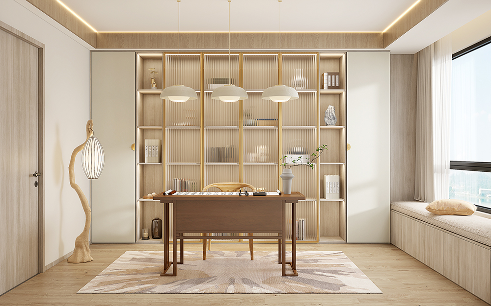 書房定製(zhi)整牆書櫃,對稱式(shi)造(zao)型帶來典雅的(de)平衡之(zhi)美,搭配(pei)别緻的(de)落地燈做裝(zhuang)飾,立足于(yu)傳(chuan)統,又(yòu)加(jia)以(yi)創新(xin),帶來現(xian)代(dai)的(de)書香氣(qi)息。