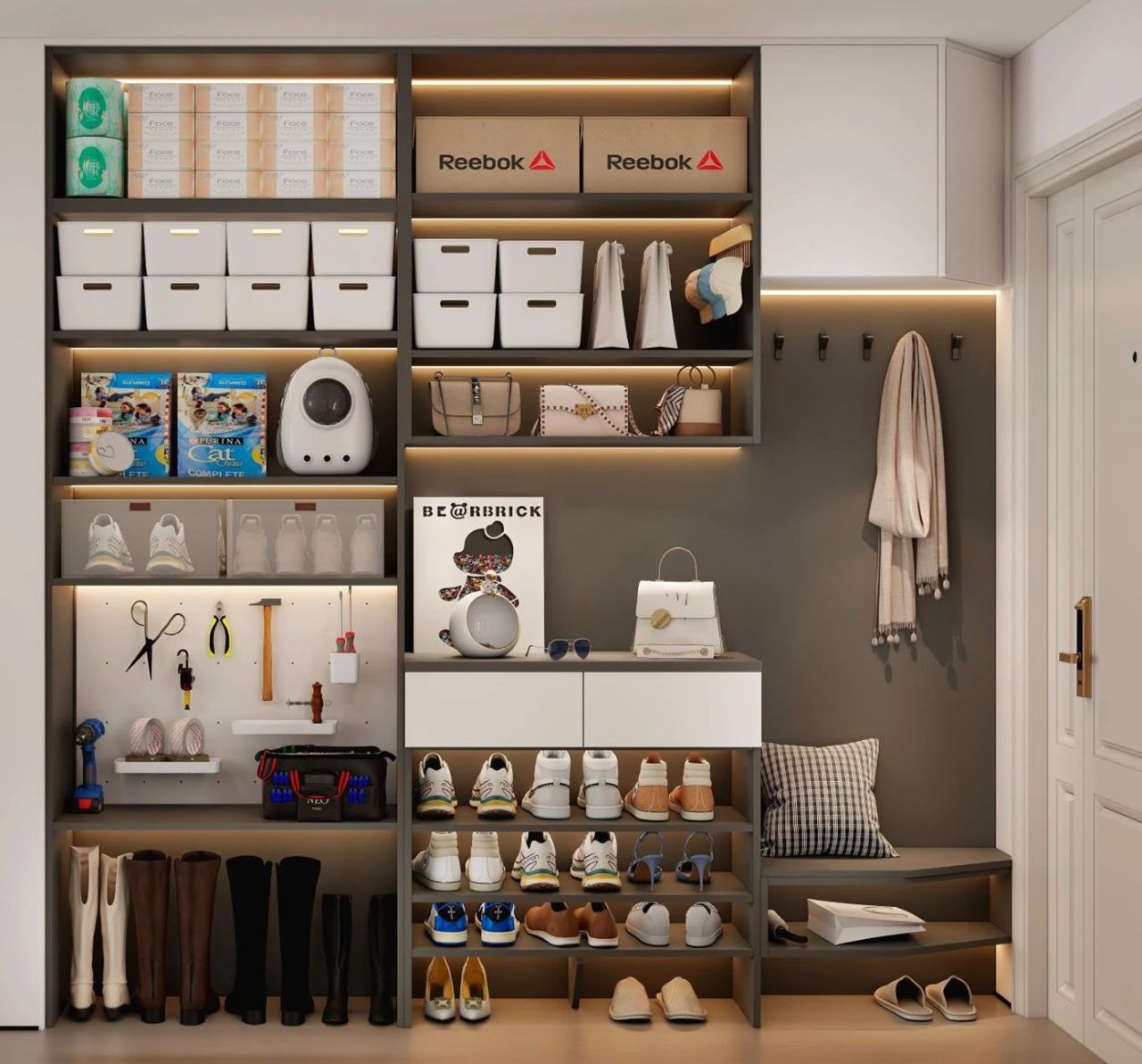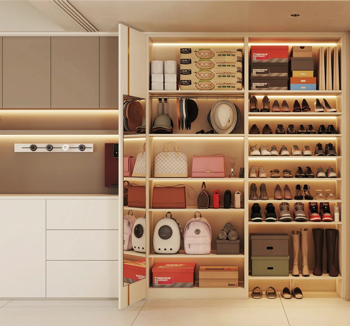 ▫ 高(gao)頻區(qu)鞋櫃做可(kě)移動(dòng)層闆,根據鞋子(zi)高(gao)度随時調整👠