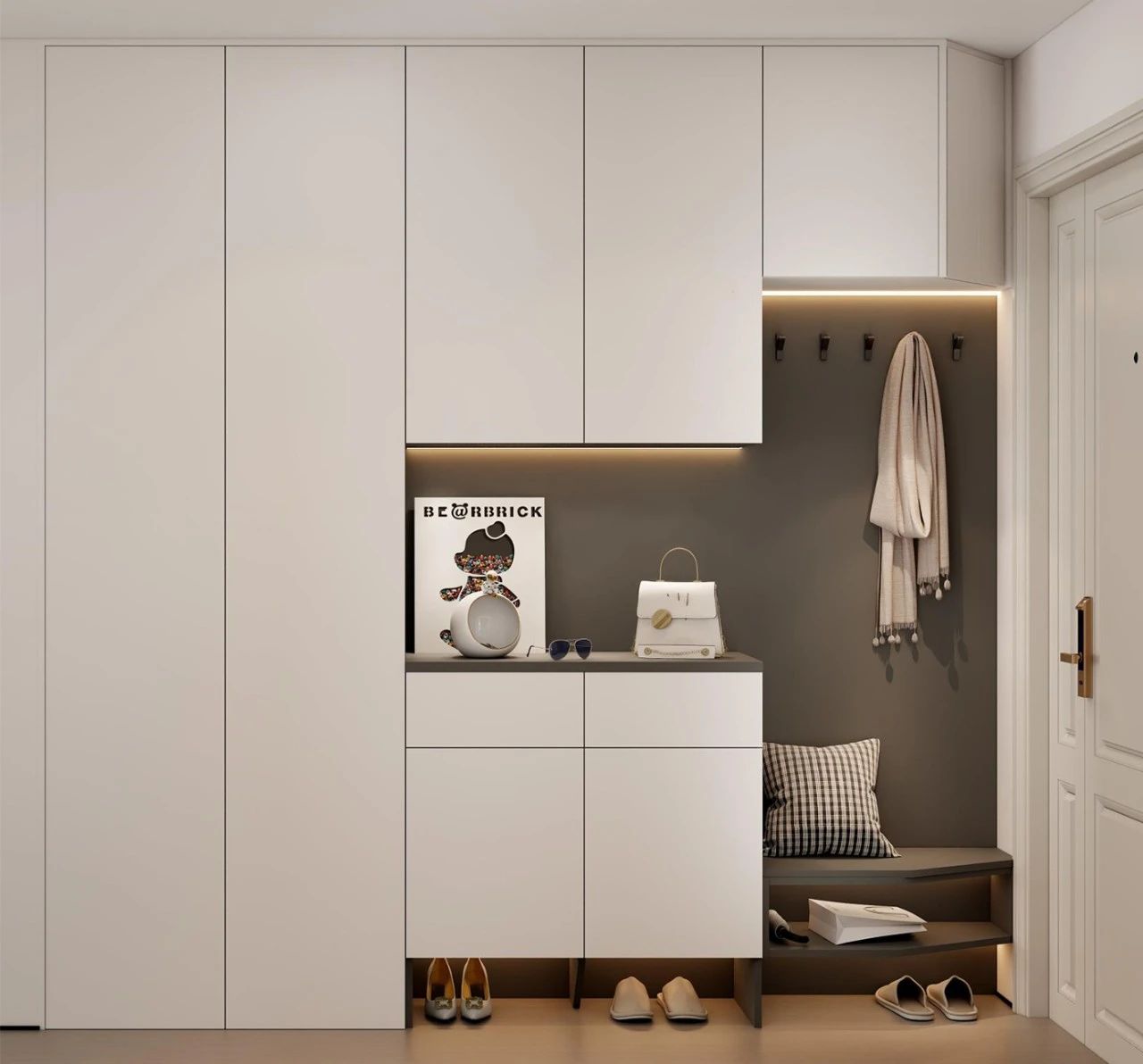 案例郃(he)集(ji)丨4款奶油風入戶(hu)玄關櫃,附內(nei)部(bu)布跼(ju)